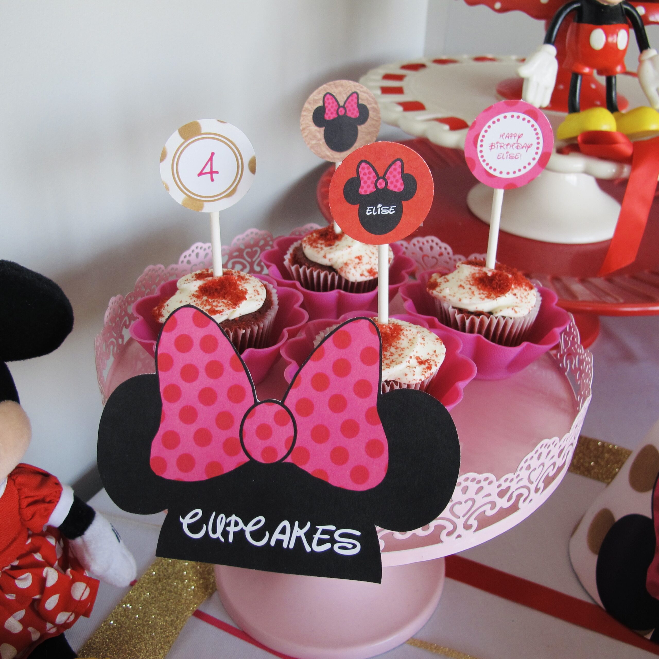 Use polka-dot liners, wrappers, and straws to echo Minnie’s style throughout the food table.